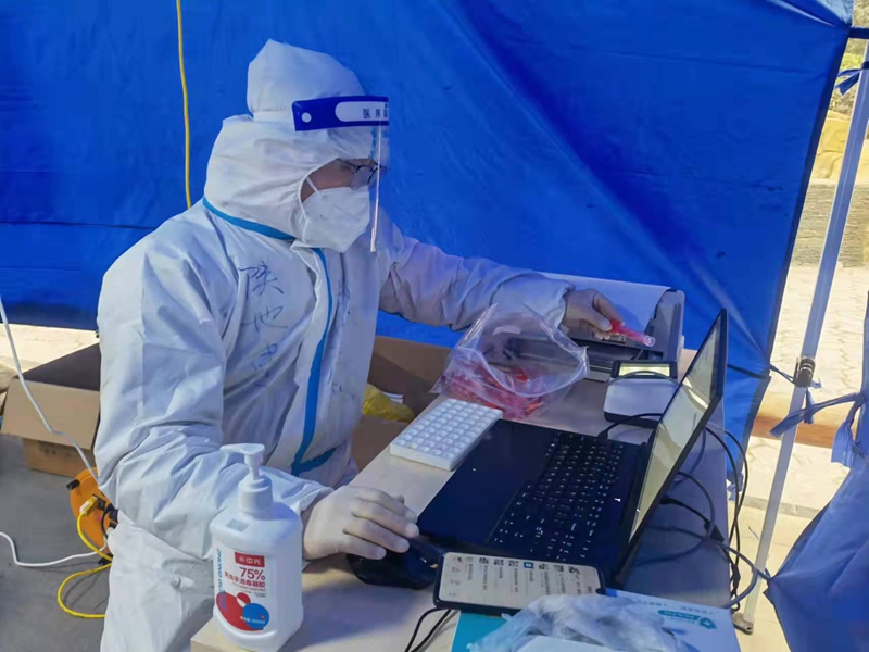 1月4日凌晨3:11,地建房地产集团公司职工党洲涛接到社区李主任通知,要求早7:00在社区办公室集合,配合医护人员完成核酸检测信息录入工作。他第一时间回复:“保证按时参加。”在清晨的第一缕阳光照耀大地时,党洲涛已换好防护服,坐在电脑桌旁,静等新一轮核酸检测工作开始。自2021年12月29日参加西十里铺社区抗疫工作以来,他24小时待命,不分昼夜,随叫随到,已配合社区医护人员累计完成核酸检测信息录入4530余人次。1月4日晚上10点,党洲涛已连续工作超过14个小时。他先后参与核酸检测信息录入和社区蔬菜发放工作,核酸检测过程中,面对系统宕机、天气寒冷,他耐心安慰、劝导居民,积极帮助老人儿童制作纸质身份信息二维码,并主动承担居家隔离、老弱病残上门检测工作。系统恢复后,和社区工作人员群策群力,采取加开通道、分类导流、上门服务等多种方式,提高工作效率,确保按时完成当日检测任务。下午4点,核酸检测工作结束后,他又立即投身社区蔬菜发放工作,上车卸菜、过程转运、上门送菜等每个环节都能看到他的身影,在社区工作人员、下沉干部、志愿者的共同努力下,终于在22:30完成了蔬菜发放工作,共配送1480余份。