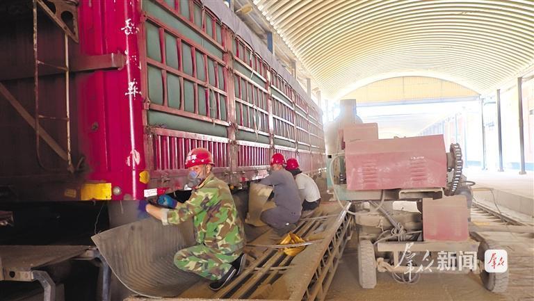 6月16日,在陕西省储备粮咸阳直属库有限公司,工人准备卸粮。