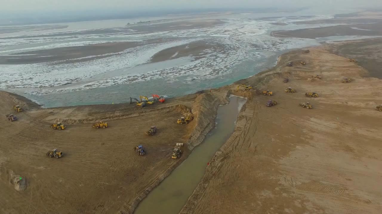 黄河分公司刚组建时,条件十分艰苦,由于时间紧、难度大、任务重,为保证韩城下峪口试验段控导工程成功合拢,全体人员众志成城,同心协力,克服隆冬时节恶劣的自然条件,在施工现场附近支起帐篷,就地安营扎寨。不分昼夜,加班加点,定任务、促进度、赶工期,终于在2016年1月12日,实现了导流槽工程的胜利贯通,谱写了黄河滩上的一曲颂歌。